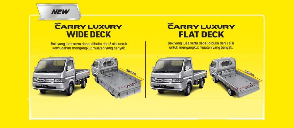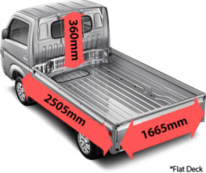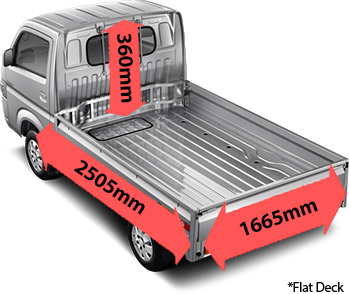 | Lebar Bak | Flat Deck : 1675 mm, Wide Deck : 1765 mm |